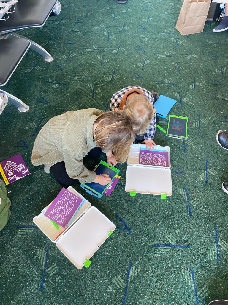 Tyler needed to be back in Portland before us, and the boys and I made the journey home a few days later. Thank you, Jesus, for shows and spicy water, as the combo saves us on flights and makes the experience doable. I did get some funny looks as my whale body shuffled through the airport with our luggage and both boys running amuck.