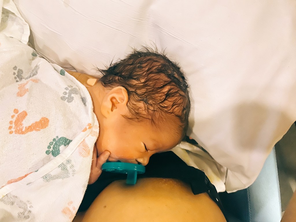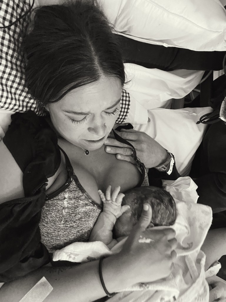 I knew we were getting close, and my demeanor shifted. My emotions were bubbling inside my throat, and I felt an overwhelming sense of fear, sadness, anger, excitement, basically every emotion all in one. (Cue another great sign of labor progressing). Deep in my gut, I knew this was my last hurdle before becoming fully dilated. I had no choice other than to let it out. I began to sniffle, then cry, then weep. “I know that if I birth Amos, I can’t protect him anymore,” I said. The pain of that felt overwhelming to me. These were the last moments he was safe and whole, and he was about to enter the land of unknowns where he would be poked and prodded, and it would never be the same. I had carried him all of these months. Months of grief and tears and sadness, but assurance that we had time until we had to face the hard part. Tyler and Jess stayed quiet and gave me the space to let it all out. Tyler prayed the psalms over me, and we listened to Hope on the Horizon. I asked for the doc to come in because I knew I was ready. Sure enough, they gave me the last check, and I was fully. I pushed in complete silence with a room bright as can be with a million doctors around the foot of the bed and even spilling into the hallway. They were respectful and kind, but I kept thinking, omg, there are so many shoes in this room, haha. After 12 minutes of excruciating pain, Amos came into the world crying a roar and was placed on my chest. I felt overwhelmed with gratitude and sadness knowing I got to feel his skin on mine, and also, they were also about to take him away. My doctor said it was time. Before I could blink my eyes, Tyler, Amos, and the doctors were entirely out of eyeshot. Jess never left my side and was with me those moments after, which made me feel less alone. I had no adrenaline, probably because there was no bassinet next to me or a baby on my chest. The doctor sewed me up. Minutes later, we heard from the cath lab where Amos had his first echo, and his aortic coercion and DTGA diagnosis were confirmed. Shoot-he was not healed in the womb. He headed to his first surgery/procedure, where they placed a balloon in his chest to keep him alive until his switch operation. I didn’t see him again until 3:00 AM.
